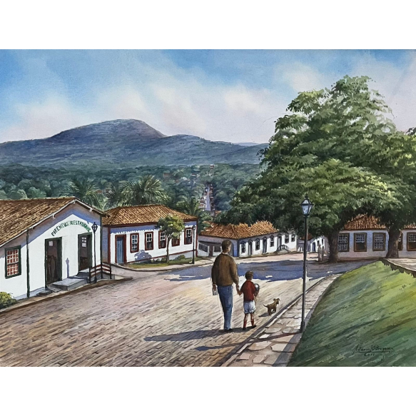 EspañolDom Antônio Orleans e Bragança - Pirenópolis - 46 x 61 cm - Aquarela - Assinatura canto inferior direito e Data 2011