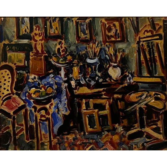 EspañolSérgio Telles - Atelier em Paris - 33 x 41 cm - Óleo sobre tela - Assinatura canto inferior esquerdo e Data 1992 - Ex-coleção do artista