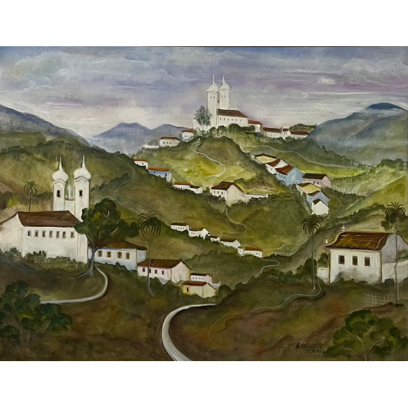 EspañolWagner de Almeida - Ouro Preto - Homenagem a Guignard - 70 x 90 cm - Óleo sobre tela - Assinatura canto inferior direito e Data 1987