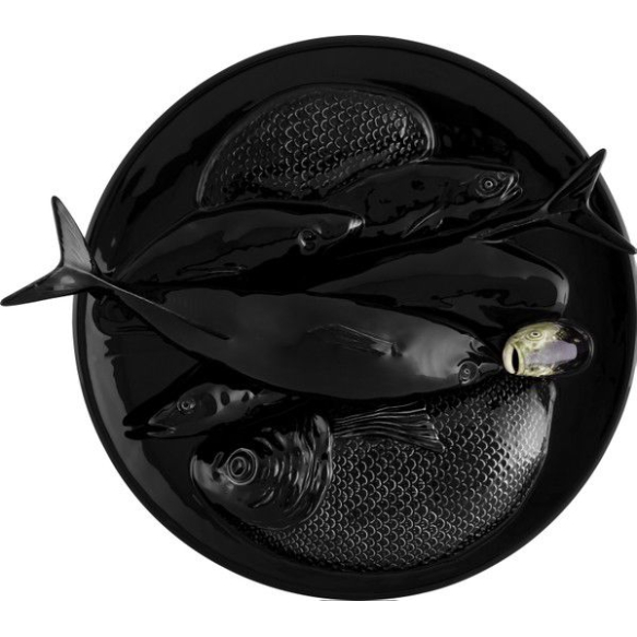 EspañolLuiz Zerbini - Rio Negro - 37 cm de diâmetro - Faiança artística, Bordallo Pinheiro, da série Bordallianos do Brasil - Tiragem de 250 - Assinatura base