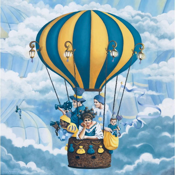 EspañolDiego Mendonça - A viagem do balão a procura da chave - 100 x 100 cm - Acrílica sobre tela - Assinatura verso e Data 2025