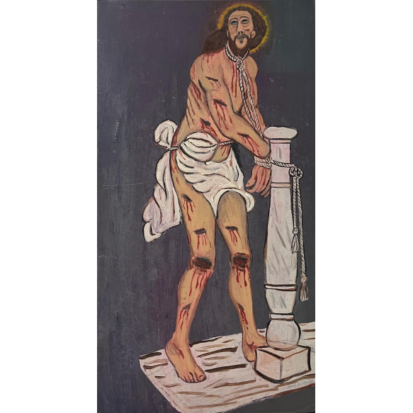 EspañolJosé Assunção - Homenagem a Aleijadinho - 50 x 27 cm - Óleo sobre eucatex - Assinatura canto inferior direito