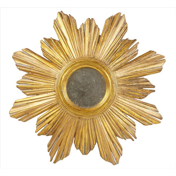 Espelho sol com moldura de madeira dourada e recortada. Diam. 31cm (total c/ moldura). Brasil, meados séc. XX