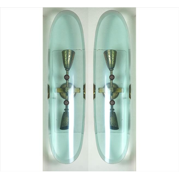 Par de luminárias de parede com estrutura de latão e placa de vidro. Alt. 50 x 13 x 12cm cada. Brasil, década 60 (latão oxidado)