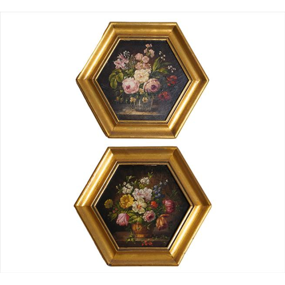 A.B, Pendant de quadros representando vasos de flores, OSE, ACID, 28 x 32cm cada. (total c/ moldura)
