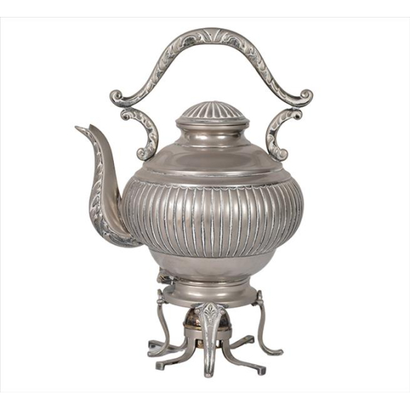 Samovar de metal espessurado à prata, ornamentado com caneluras em relevo e guirlandas. Alt. 35 x 25 x 20cm. Séc. XX (falta pega superior do bule)