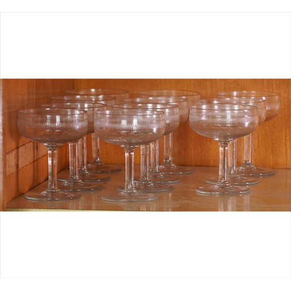 Jogo de 11 taças de cristal para champagne, com detalhes acidados à maneira ST. Louis. Europa Séc. XX
