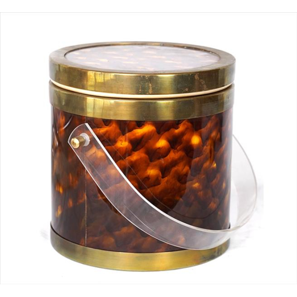 Balde de gelo com estrutura de baquelite simulando tartaruga e detalhes de latão. Alt. 21 x 20cm. Brasil, década 70