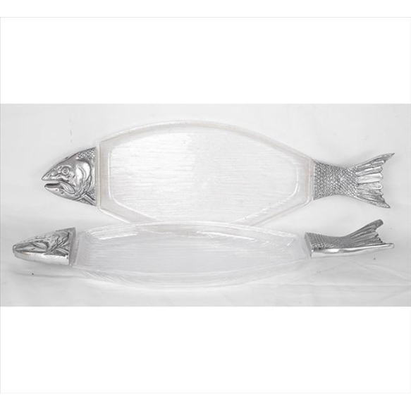 Jogo de 02 travessasde acrílico em formato de peixes, extremidades de metal. Comp. 65 x 22 x 03cm cada.
