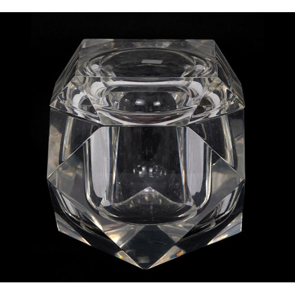 Balde para gelo com estrutura de acrílico em forma de pedra lapidada, marca de manufatura sob a base. Alt. 19 x 19cm. Brasil, séc. XX