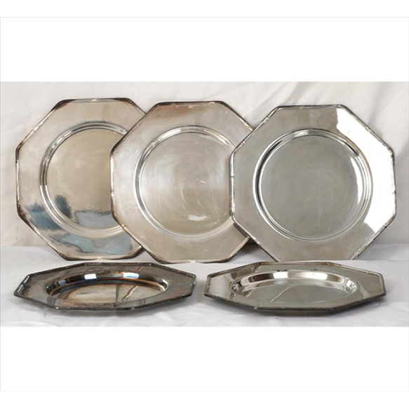 WOLFF, Jogo de 05 suplats de metal espessurado à prata. Diam. 29cm. cada.