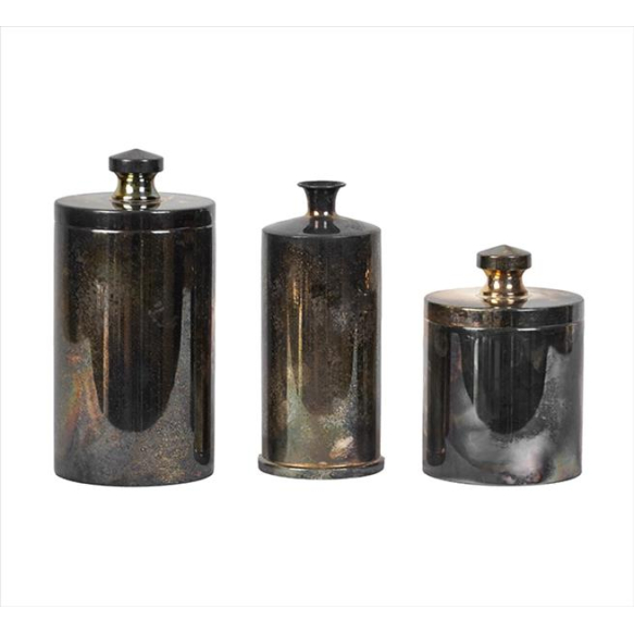 BRISTOL, Jogo de 03 caixas cilíndricas de metal espessurado à prata, marca da manufatura sob a base. Alt. 17 x 09cm (maior) e 12 x 09cm (menor)