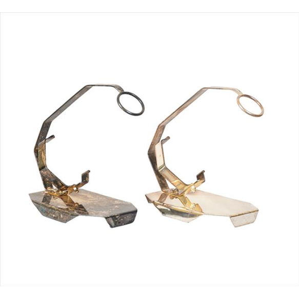 Par de suportes para garrafas, metal prateado. Alt. 23 x 24 x 12cm cada.