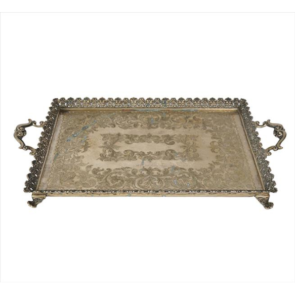 Travessa de prata-de-lei, contraste teor 833, ornamentada com guirlandas cinzeladas, galeria fenestrada. Alt. 08 x 41 x 24cm. Brasil, séc. XX