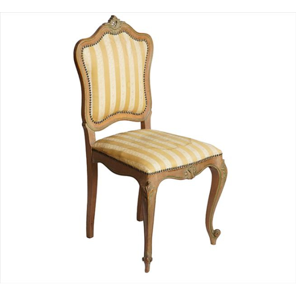 Cadeira com estrutura de madeira, estilo Luís XV, com resquício de patina, forração de tecido listrado. Alt. 100 x 46 x 45cm. (tecido manchado) Brasil início séc. XX.