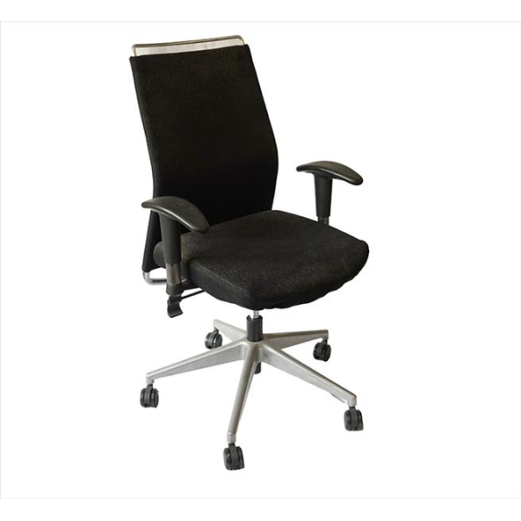 VOKO, Cadeira de escritório com forração de tecido, estrutura de metal terminando em rodízios. alt. 106 x 64 x 63cm.