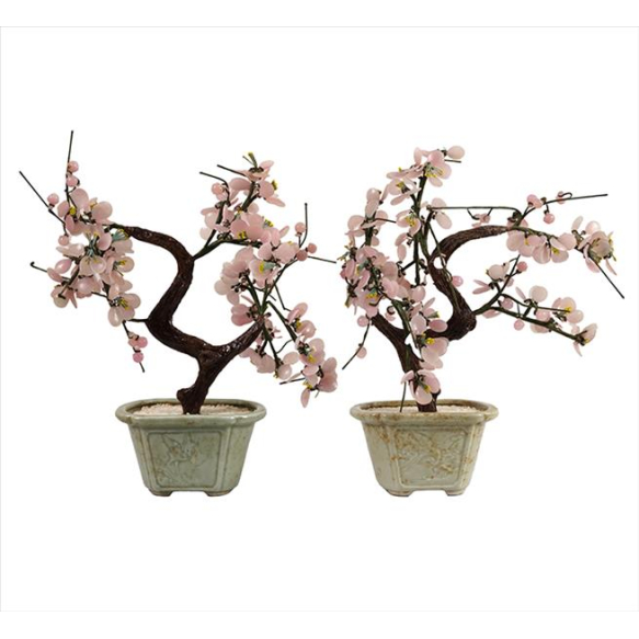 Par deplantas ornamentais oriental, pétalas de pedra polida, base de porcelana estilo Celadon. China séc. XX.Alt. 32 x 30 x 18cm cada. Séc. XX