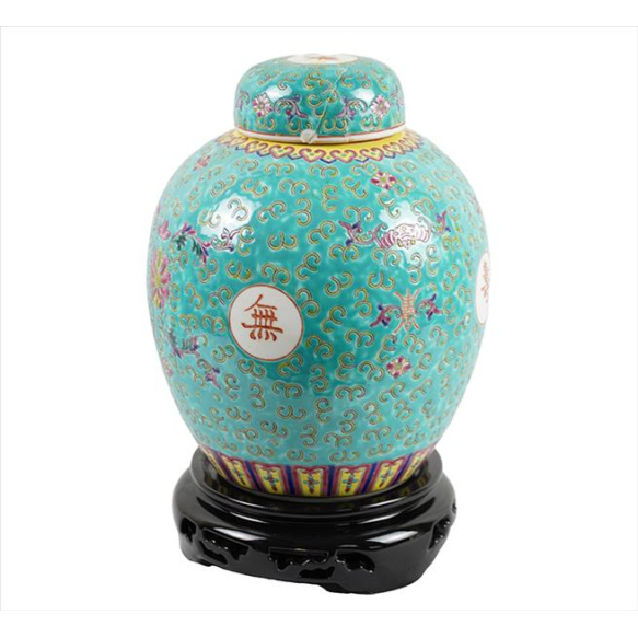 Potiche de porcelana chinesa, ornamentado com ideogramas, marca da manufatura sob a base. Alt. 29 x 21cm. China, séc. XX (tampa com restauro)