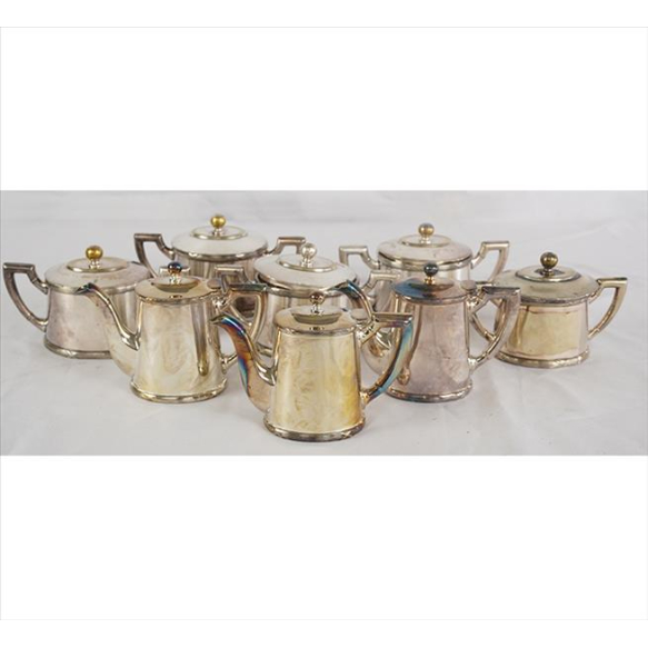 Lote contendo 08 peças de metal espessurado à prata, marca da manufatura Wolff - Hotel Pão de Açúcar, sendo 05 açucareiros e 03 leiteiras. 09x16x09cm e 11x15x07cm, respectivamente