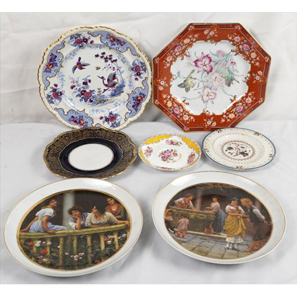 Lote contendo 06 pratos e 01 pires de faiança e porcelana, manufaturas e origens diversas. Diam. 26cm (maior) e 14cm. (menor). (com pequenos bicados)