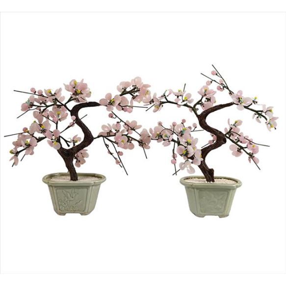 Par deplantas ornamentais oriental, pétalas de pedra polida, base de porcelana estilo Celadon. China séc. XX. Alt. 32 x 30 x 18cm cada. Séc. XX