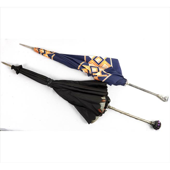 Lote contendo dois guarda-chuva/sombrinhas antigos, pegas de metal. Comp. 86cm e 82cm (fechados). Séc. XX