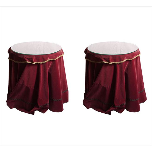 Par de mesas laterais de madeira, revestidas de veludo na tonalidade vinho. Alt. 72 x 60cm.