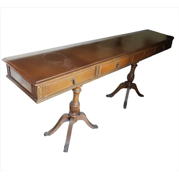 Aparador estilo Império de madeira patinada, contém 04 gavetas frontais com puxadores de metal, pés recurvos com sapatas de metal. Alt. 85 x 202 x 40cm. (falta um puxador) Brasil inic.séc. XX