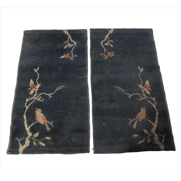 Par de tapetes chineses decorados com pássaros e árvores, 133 x 71cm cada. (precisam limpeza)