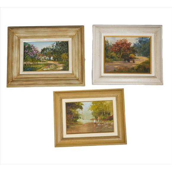Lote contendo 03 quadros decorativos com motivos diversos, OST, ACIDs. 25 x 30cm cada (m.i). (medidas aproximadas)