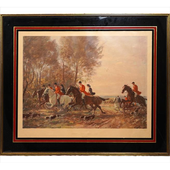 Reprodução offset de obra represetando cena de caça. 77 x 92cm. (total c/ moldura)
