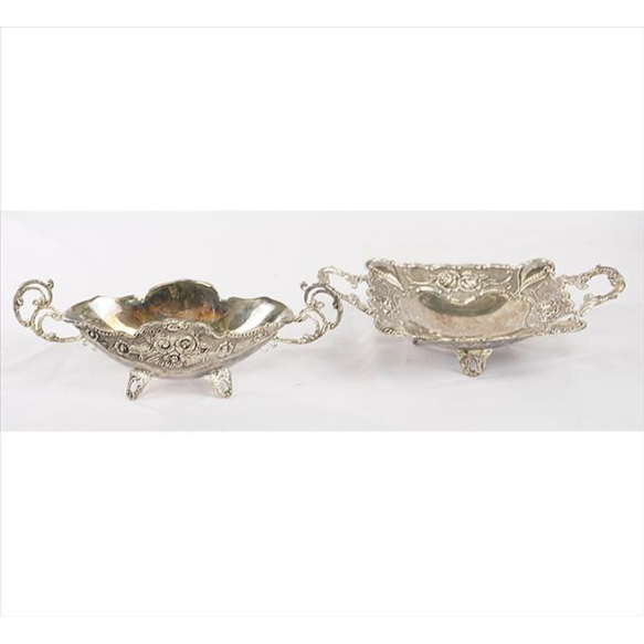 Lote contendo duas peças de metal espessurado à prata, ornamentados com guirlandas em relevo. 05 x 21 x 14cm e 06 x 21 x 08cm.