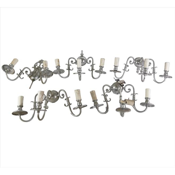 Lote contendo 05 arandelas de metal, sendo 04 do mesmo modelo, com 03 braços (25 x 47 x 27cm) e 01 com dois braços (36 x 38 x 22cm)