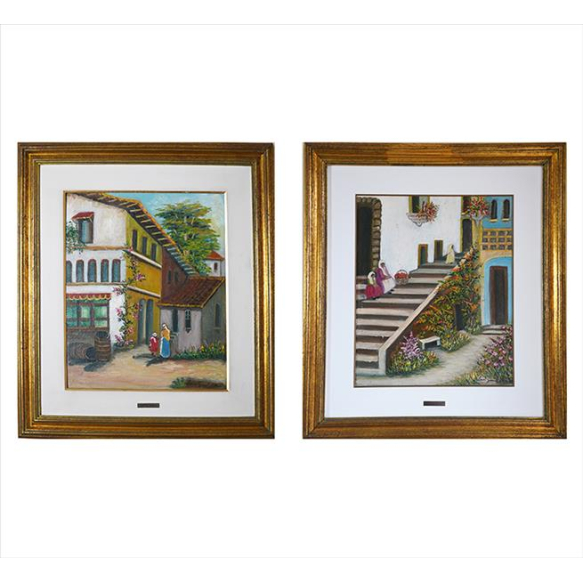 LORICE GANUT, Paisagens com Figuras, Pendant de quadros, OST, ACID, 44 x 36cm (m.i) cada.