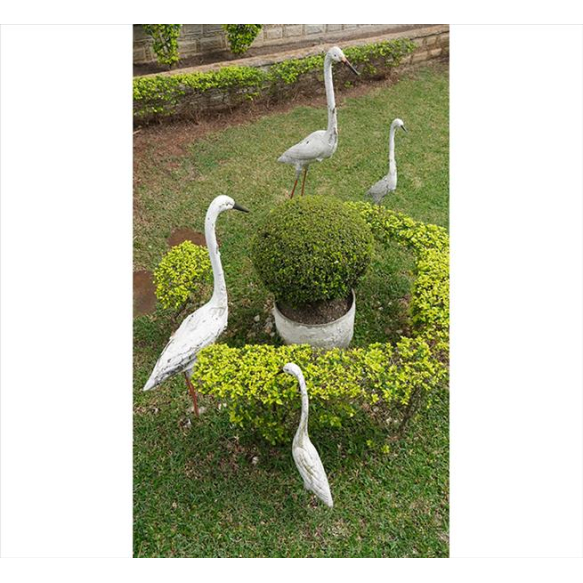 Lote contendo 07 esculturas representando aves, estrutura de fibra de vidro policromada, base de concreto. Alt. 125 x 65 x 18cm (maior) 44 x 10 x 10cm (menor)