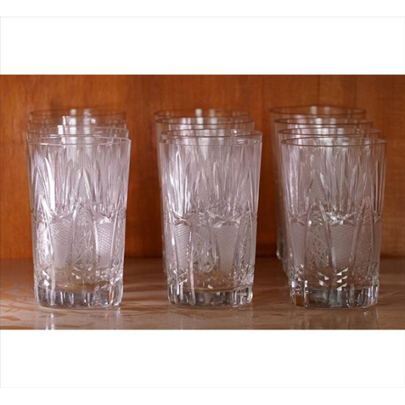 Jogo de 12 copos de cristal lapidado para água. Europa Séc. XX