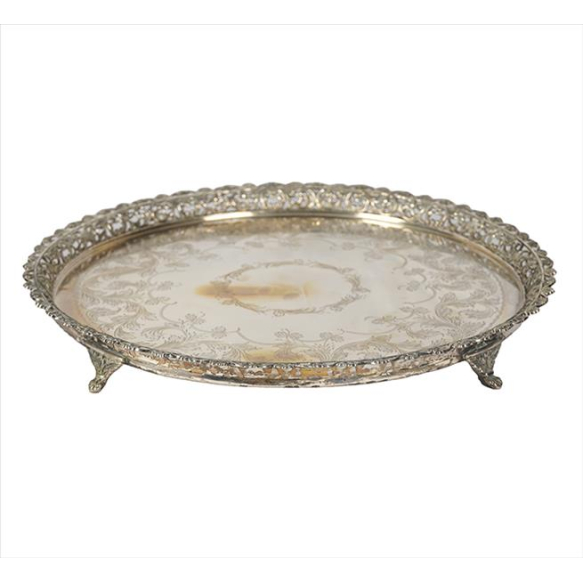 Salva de prata-de-lei, contraste teor 833, ornamentada com guirlandas cinzeladas, galeria fenestrada. Alt. 05 x 35cm. Brasil, séc. XX