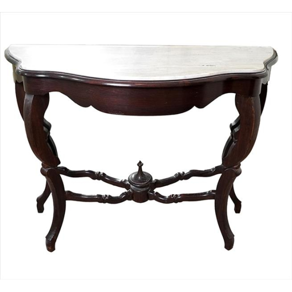 Aparador de madeira jacarandá, estilo Luís Felipe, pernas recurvas e recortadas, amarração em X terminando em pinha torneada central, tampo de mármore. Alt. 83 x 112 x 48cm. Brasil Séc. XIX