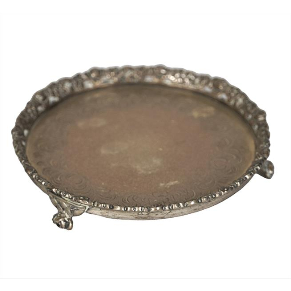 Pequena salva de prata-de-lei, contraste teor 833, decorada com guirlandas cinzeladas. Alt. 02 x 12cm. Brasil, séc. XX