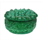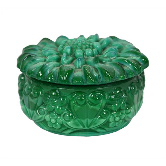 Caixa de vidro simulando pedra malaquita, decoração floral. Alt. 07 x 08cm. Europa, séc. XX