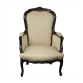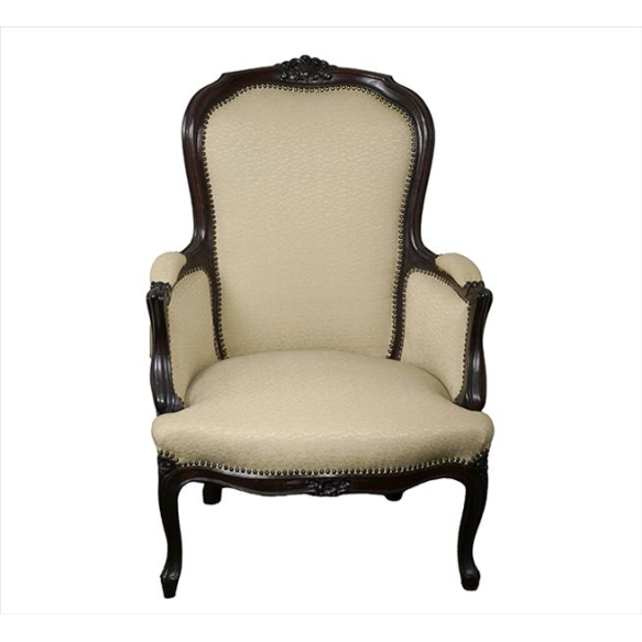 Poltrona com estrutura de madeira entalhada, ornamentada com caneluras em relevo, estilo Luís XV, forração de tecido na tonalidade creme. Alt. 96 x 67 x 65cm. Europa Séc. XX