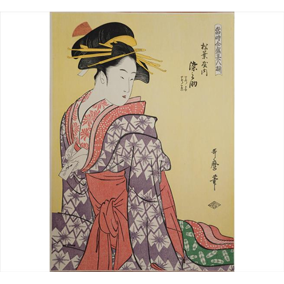 KITAGAWA UTAMARO, A Cortesã Somenosuke de Matsubaya, Xilogravura Ukiyo-e, assinada. 40 x 27cm. Japão, séc. XX (sem moldura)