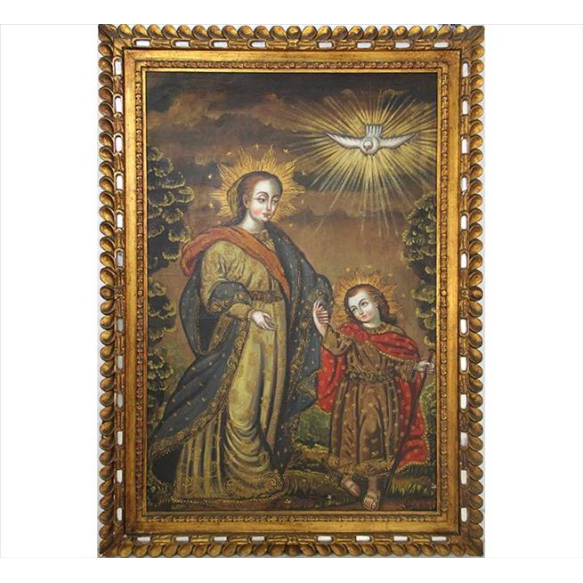 Quadro cusquenho, Cena Sacra, OST, 116 x 75cm. Peru, séc. XIX/XX.
