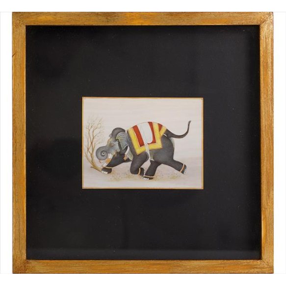 Placa de osso natural policromada, representando figura de elefante. 08 x 10cm (m.i). Oriente Médio, séc. XX