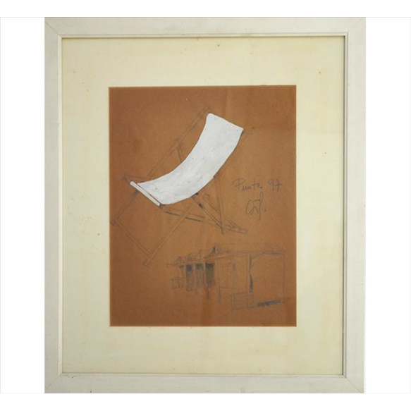 ATTILIO BASCHERA, Cadeira e Alojamento, Técnica Mista sobre Papel, assinado centro direito, 35 x 27cm (m.i). Datado e localizado, Punta 97