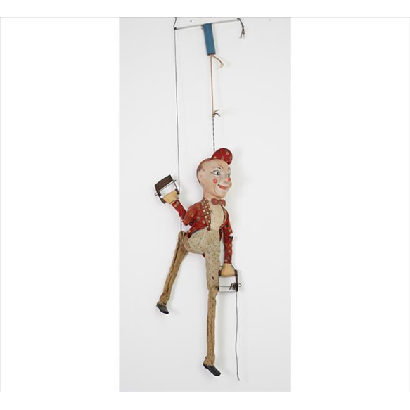 Marionete com estrutura de latão policromado e vestes de tecido. Alt. 80 x 18 x 12cm. Meados séc. XX