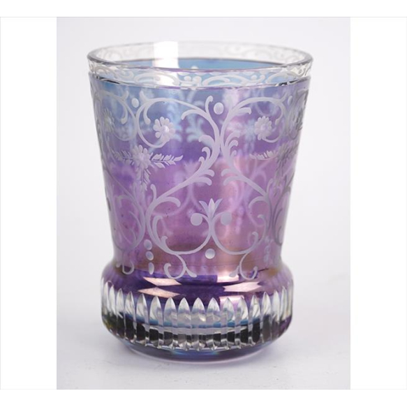 Goblet de cristal acidado, ornamentado com ramagens e lapidação na base, sob fundo degradê, marca/assinatura sob a base não-identificada. Alt 12 x 10cm. Europa, séc. XX