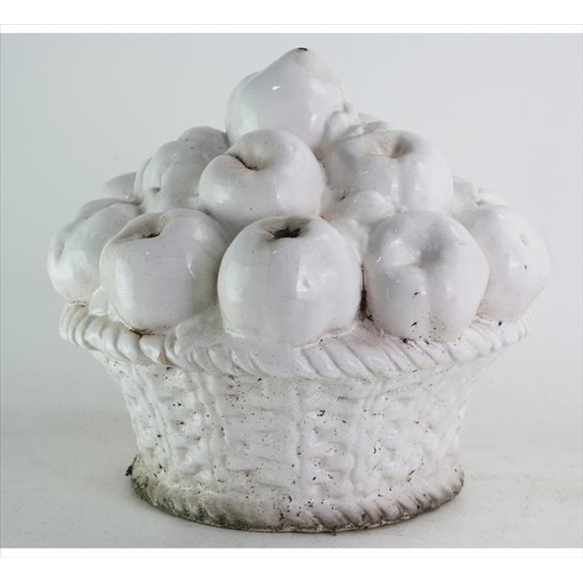 Centro de mesa de faiança esmalatada na tonalidade branca representando cesto com frutas. Alt. 32 x 33 cm. Provavelmente Itália ,Séc. XX (com pequeno restauro)
