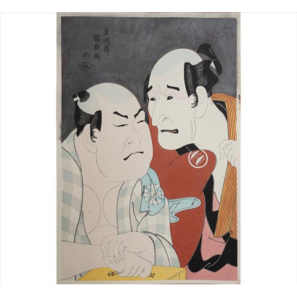 TOSHUSAI SHARAKU, Os Atores Nakajima Wadaemon como Bodara Chozaemon e Nakamura Konozo como Gon de Kanegawaya, Xilogravura Ukiyo-e, assinada. 40 x 27cm. Japão, séc. XX (sem moldura)