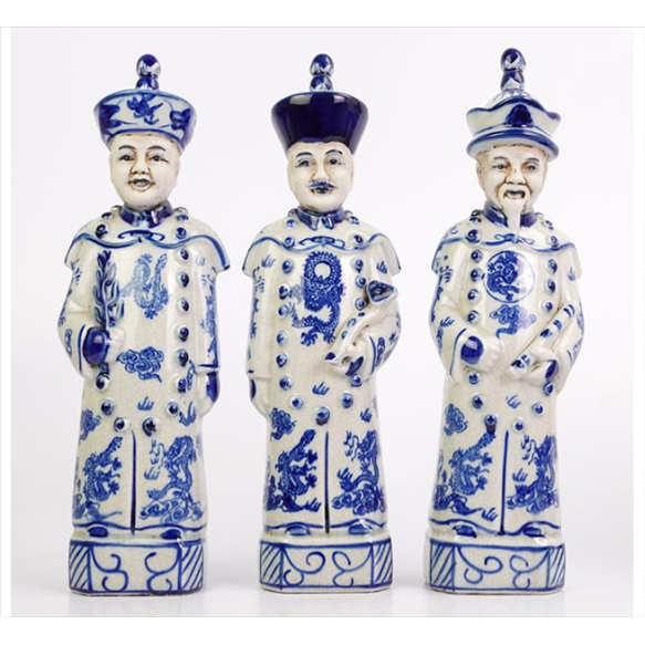 Lote contendo três esculturas de cerâmica esmaltada representando figuras de sábios orientais, marca de manufatura sob a base. China século XX.Alt. 30 x 08 x 07cm.